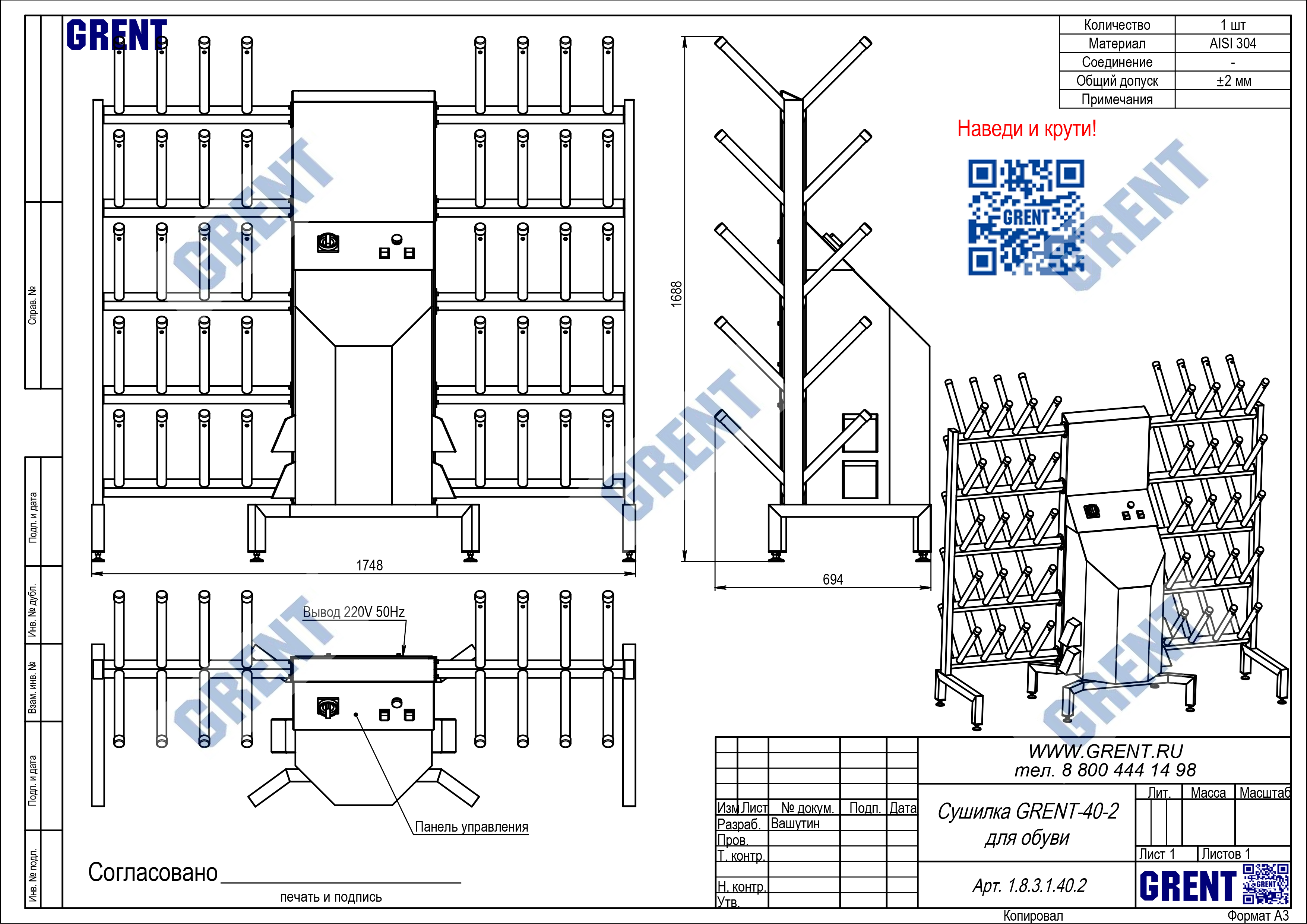 - материал — нержавеющая сталь AISI 304
