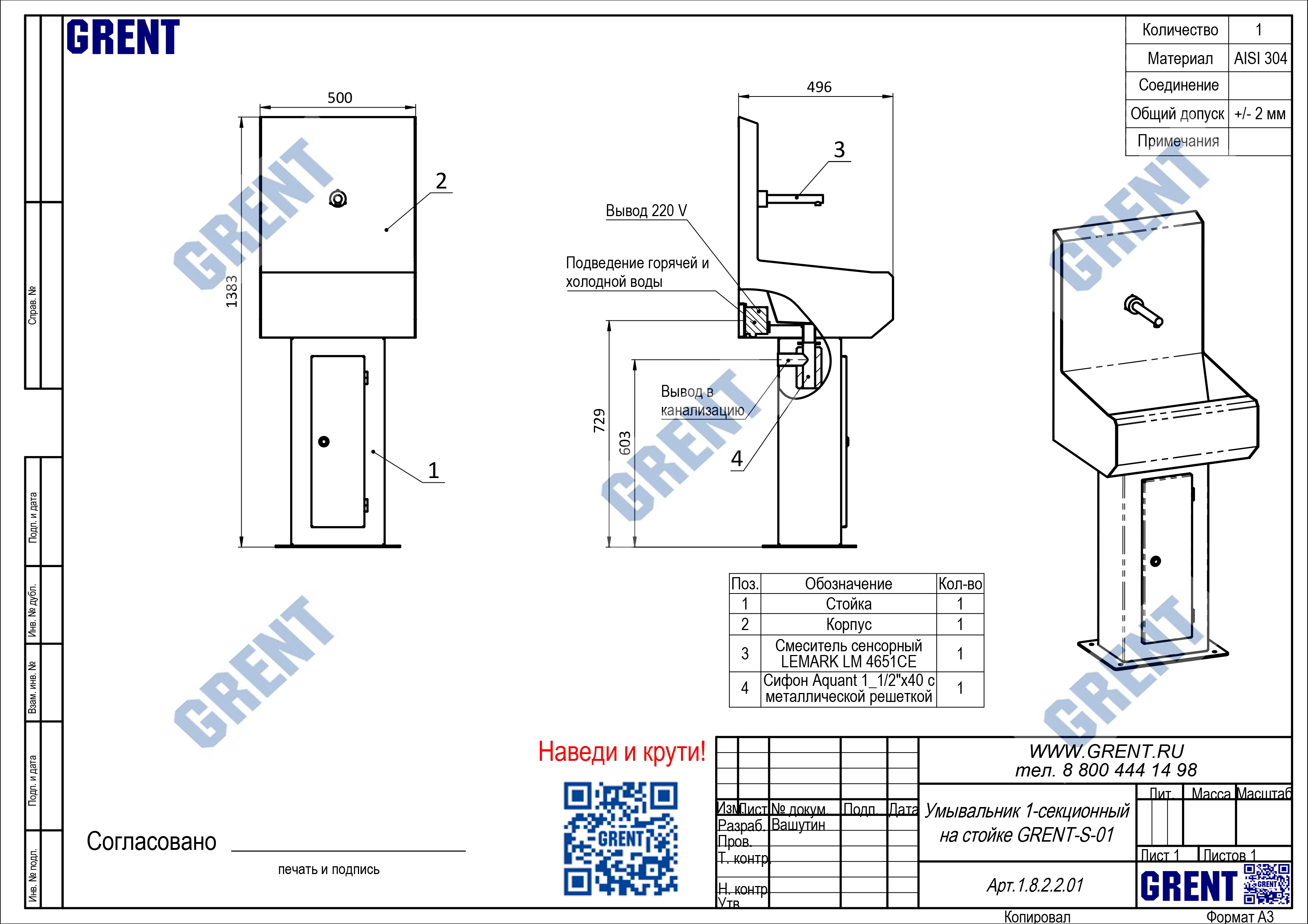 Одно секционный умывальник GRENT-S-01 используется для бесконтактной мойки рук персонала преимущественно на предприятиях общепита и пищевой промышленности. Активация подачи воды осуществляться фотодатчиком при поднесении рук к смесителю.